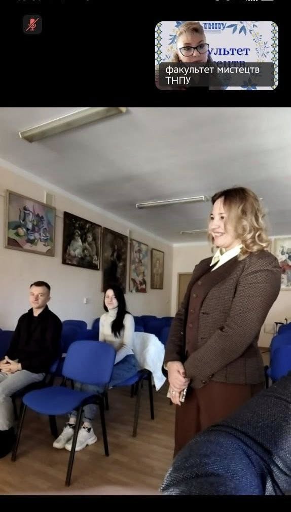 Факультет мистецтв Кафедра музикознавства та методики музичного мистецтва ТНПУ ім. В.Гнатюка в ауд. 301 (Мистецькій залі) відбулась настановча Конференція з педагогічної практики-гр. зММ-31, ММ-32, виконавської практики-гр.ММ-42, зММ-41-методист із спеціальності-доц. Дмитро ГУБʼЯК (засл.артист України), та виробничої педагогічної практики-гр. СОММ-41-методист з спеціальності-доц. Лариса ОРОНОВСЬКА; Конференція відбулась у змішаному форматі з використанням платформи Zoom;